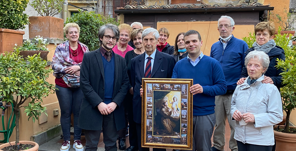 L'Istituto Pubblico di Anzino ha celebrato con una trasferta romana nelle giornate del 18, 19 e 20 marzo 2022 l’anniversario di fondazione dell’Ente, avvenuta il 17 marzo del 1832 (quindi ben 190 anni or sono). Nella stessa data, un anniversario particolare di questo anno: il 17 marzo del 1822 infatti i coloni romani di Anzino acquistavano il primo nucleo di quella che sarà la prima sede dell’Ente in paese, nonché municipio del comune di Anzino fino al 1929. Il viaggio ha voluto commemorare tutti gli anzinesi emigrati nei secoli a Roma, che non si dimenticarono mai di arricchire e supportare il paese di origine in Valle Anzasca e il suo locale santuario. La delegazione era composta di alcuni membri del direttivo (Presidente, Vicepresidente e Tesoriere) oltre che di numerosi anzinesi unitisi per l’occasione, ed è partita alla volta di Roma la mattina del 18 marzo. Il viaggio ha voluto coinvolgere anche gli anzinesi e gli oriundi che ancora vivono a Roma: nel pomeriggio del primo giorno infatti la delegazione si è recata in visita all’ambasciatore Alessandro Quaroni, figlio dell’ambasciatore Pietro e nipote dell’urbanista Ludovico Quaroni, una delle più prestigiose e antiche casate anzinesi. L’ambasciatore ha ricevuto la delegazione anzinese al completo, che ha recato in omaggio a lui e alla moglie Monica una copia del quadro miracoloso di S. Antonio di Padova, simbolo e cuore del paese di Anzino che tiene uniti i compaesani nonostante la distanza geografica. Il giorno seguente è stata la volta delle celebrazioni presso la chiesa frequentata dagli anzinesi, la basilica dei SS. Ambrogio e Carlo al Corso, chiesa della nazione lombarda a Roma; grazie all’ospitalità dei PP. Rosminisani, in particolare dell’amico P. Pierluigi Giroli e di Don Davide Busoni di Bognanco, è stato possibile celebrare una messa per tutti gli anzinesi e i benefattori del paese presso l’altare che custodisce la preziosa reliquia del cuore di San Carlo Borromeo. Alla cerimonia erano presenti la delegazione dell’Istituto Pubblico, l’ambasciatore Alessandro Quaroni e la moglie Monica, Don Damiano Pomi, amico di Anzino che ha presieduto la celebrazione, Giorgio Cantonetti Guattani, che perpetua la tradizione degli anzinesi nel centro della città eterna. È stato particolarmente commovente poter celebrare in un luogo tanto importante, per secoli frequentato dagli anzinesi. Al termine il presidente dell’Istituto ha donato alla chiesa e alla locale arciconfraternita, che ha visto tra i suoi iscritti moltissimi compaesani, una copia del quadro di S. Antonio, al fine di lasciare memoria nella chiesa della comunità anzinese. Dopo la celebrazione la Sig.ra Monica Quaroni, assieme al marito e al presidente dell’Istituto, ha recato un omaggio floreale all’altare della madonna, nella cappella dove sono numerose sepolture di ossolani. Un momento che ha particolarmente emozionato i presenti per il legame con la vita degli antenati. La celebrazione conviviale è proseguita presso il ristorante La Campana, dove i presenti hanno potuto rinsaldare i legami e approfondire la reciproca conoscenza nel segno dei comuni antenati anzinesi. Nella giornata di domenica la delegazione si è recata alla Santa Messa presso la Basilica di San Pietro in Vaticano e ha assistito all’angelus del Santo Padre in Piazza San Pietro. Il tempo restante nelle giornate romane è stato dedicato a visitare i luoghi anzinesi, in particolare le case che furono dell’Istituto in vicolo delle Grotte 32 e altri luoghi di interesse turistico e culturale, con la preziosa guida di Damiano Pomi, che grazie ai propri studi di storia dell’arte ha regalato agli anzinesi una visita indimenticabile. Resta un legame tra l’Ossola e Roma che continua lungo i secoli e che va rinnovato e reso vivo nel segno delle comuni origini e dell’amicizia nel segno di S. Antonio di Padova. L’Istituto ringrazia i presenti e tutti coloro che hanno reso possibili queste giornate, in particolare la fam. Quaroni, Don Pierluigi Giroli e i PP. Rosminiani di San Carlo al Corso, l’arciconfraternita dei Santi Ambrogio e Carlo, Don Damiano Pomi.